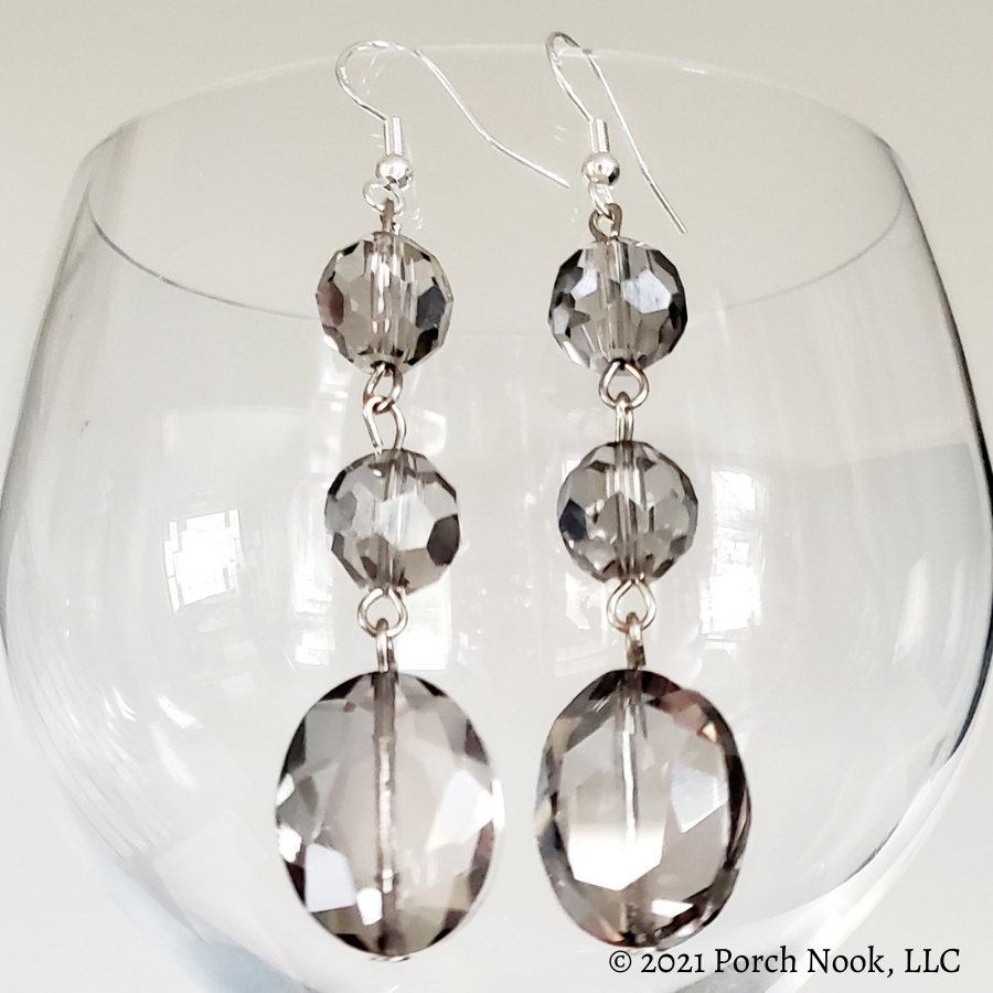 Vintage Chandelier Smoke Crystal Earrings, Handmade